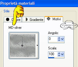 Apri il file MD-Silver.jpg e setta il colore di primo piano con il pattern, angolo 0, scala 100.