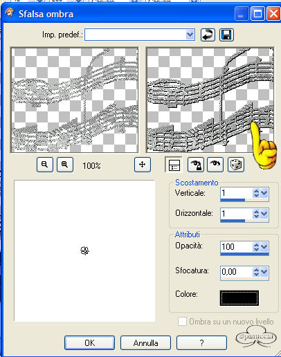 Effetti>Effetti3D>Sfalsa ombra con i precedenti settaggi.