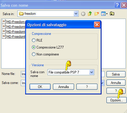 deve accertarsi, dopo aver cliccato su Opzioni, che il file sia salvato come "file compatibile con PSP 7".