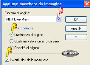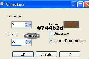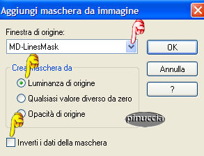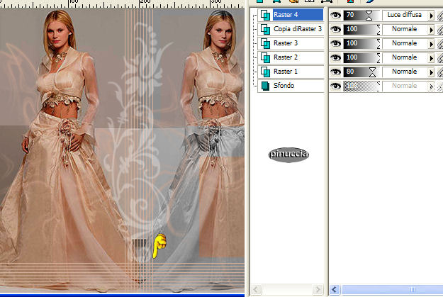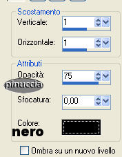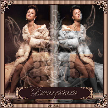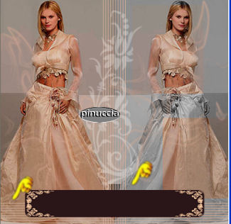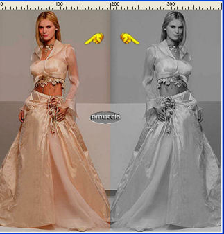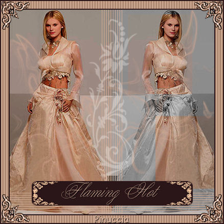 qui puoi trovare qualche risposta ai tuoi dubbi. Se l'argomento che ti interessa non č presente, ti prego di segnalarmelo. Questo tutorial č stato creato in PSP 9. Occorrente: Materiale qui Apri tutte le immagini in PSP. Apri il font e minimizzalo nella tua area di lavoro. Ricordati di salvare spesso. Apri una nuova immagine trasparente 400 x 400 pixels. Apri una della immagini Flaming Hot fornite con il materiale. Shift+D per fare due copie. Attiva una di queste copie e vai a Modifica>Copia. Metti da parte le altre due per il momento. Ritorna alla tua immagine 400 x 400. Modifica>Incolla>incolla come nuovo livello. Sposta l'immagine completamente a sinistra.![]() Attiva una delle due copie. Immagine>Rifletti. Immagine>Scala di grigi. ![]() Immagine>Aumenta profonditā colore>Incrementa di 16 milioni. ![]() Modifica>Copia. Ritorna al tuo lavoro e vai a Modifica>Incolla>Incolla come nuovo livello. Spostala completamente a destra.Sposta le due immagini un po' in modo che abbiano lo stesso spaziodalla linea che le divide al centro. ![]() Livelli>Unisci>Unisci tutto appiattisci. Ritorna alla seconda copia. Immagine>Rifletti. Con lo strumento Selezione rettangolo sfumatura 0, seleziona due parti della foto come mostrato nella schermata sotto. Tieni premuto il tasto shift per selezionare la seconda parte. (per le ultime versioni di PSP questo non č necessario) ![]() Modifica>Copia. Ritorna alla tua tag e vai a Modifica>Incolla>Incolla come nuovo livello. Sposta i pezzi sopra la donna a destra in modo che combacino con l'immagine sottostante.![]() Nella paletta dei livelli abbassa l'opacitā all'80%. ![]() Apri MD-HotOverlay.psp e vai a Modifica>Copia. Torna al tuo lavoro e vai a Modifica>Incolla>Incolla come nuovo livello. Non spostarlo. E' giā al posto giusto. Apri MD-LinesMask.jpg. Apri una nuova immagine trasparente 40 X 410 pixels e riempila con il colore #d3af9a.Livelli>Nuovo livello maschera>Da immagine. ![]() Apri il menu cliccando sulla piccola freccia (manina rossa) e cerca la maschera MD-LinesMask.jpg. Inverti maschera non selezionato. ![]() Livelli>Unisci>Unisci gruppo. Modifica>Copia. Ritorna al tuo lavoro e vai a Modifica>Incolla>Incolla come nuovo livello. Non occorre spostarle. Sono al posto giusto. Livelli>Duplica. Immagine>Ruota>Ruota per gradi, 90 gradi a sinistra, tutti i livelli non selezionato. ![]() Sposta le linee in basso.Se tutto č andato bene dovresti avere questo: ![]() Apri MD-Flowermask. Apri una nuova immagine 100 X 340 pixels e riempila con il bianco. Livelli>Nuovo livello maschera>Da immagine. Cerca MD-FlowerMask.jpg, inverti maschera selezionato. ![]() Livelli>Unisci>Unisci gruppo. Modifica>Copia. Ritorna al tuo lavoro e vai a Modifica>Incolla>Incolla come nuovo livello. Sposta il fiore in modo che il fondo tocchi le linee.Cambia la modalitā di miscelatura di questo livello in Luce diffusa e abbassa l'opacitā al 70%. ![]() Livelli>Unisci>Unisci tutto appiattisci. Apri MD-FlamingHot-Banner.psp e vai a Modifica>copia. Torna al tuo lavoro e vai a Modifica>INcolla>Incolla come nuovo livello. Sposta il banner a metā sopra le linee in fondo alla tag. ![]() Chiudi il colore di primo piano e imposta il colore di sfondo su #d3af9a. Cerca il font Young Love ES. E' nello zip. Dimensione 36. pennellata 0, B per bold - antialias selezionato o Nitido. ![]() Scrivi il tuo testo: io ho scritto "Flaming Hot". Livelli>Converti in livello raster. Effetti>Effetti 3D>Sfalsa ombra, con i seguenti settaggi, colore nero. ![]() Sposta il testo sopra la striscia. ![]() Livelli>Unisci>Unisci tutto appiattisci. Immagine>Aggiungi bordatura, 2 pixels, simmetriche, con il colore #2a1618. Immagine>Aggiungi bordatura, 15 pixels, simmetriche, con il colore #d3af9a. Attiva lo strumento bacchetta magica , sfumatura 0,e seleziona il bordo rosa. Effetti>Effetti di trama>Veneziana, con il colore #744b2d. ![]() Selezione>Nessuna selezione. Immagine>Aggiungi bordatura, 2 pixels, simmetriche, con il colore #2a1618. Apri MD-FlamingHot-Corner e vai a Modifica>copia. Torna al tuo lavoro e vai a Modifica>Incolla>Incolla come nuovo livello. Spostalo sull'angolo superiore sinistro.Effetti>Effetti 3D>Sfalsa ombra, con i settaggi precedenti. Livelli>Duplica. Immagine>Rifletti. Chiudi il livello di sfondo, per il momento. Livelli>Unisci>unisci visibile. Livelli>Duplica. Immagine>Capovolgi. Riapri il livello di sfondo. Livelli>unisci>Unisci tutto (appiattisci). La tua Tag č finita. Aggiungi, se vuoi, il tuo watermark o la tua firma e salva in formato jpg. ![]() ![]() ![]() ![]() Se hai problemi o dubbi, o trovi un link non funzionante, o anche soltanto per un saluto, scrivimi. Novembre 2006 |