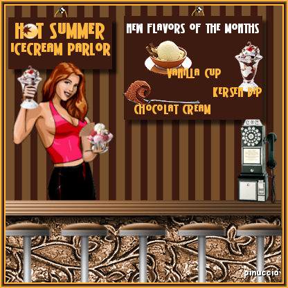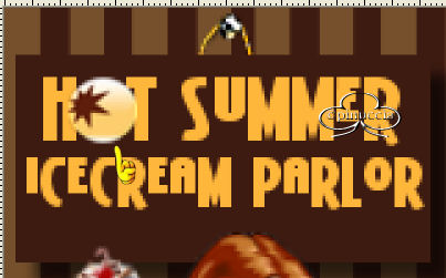 qui puoi trovare qualche risposta ai tuoi dubbi. Se l'argomento che ti interessa non è presente, ti prego di segnalarmelo. Occorrente: Materiale: qui Animation Shop qui Apri tutte le immagini in PSP e scegli quelle che dovrai usare per il tutorial. Apri il font e minimizzalo. Lo avrai immediatamente a disposizione del tuo strumento Testo. Cominciamo... Ricordati di salvare spesso. Questo tutorial è stato fatto in PSP 9. Apri una nuova immagine trasparente 400 x 400. Riempila con il colore #3e1b11.Apri il file MD-Stripes.psp e vai a Modifica>copia. Torna alla tua tela e vai a Modifica>Incolla>Incolla come nuovo livello. Si trova già a destra, così non è necessario muoverlo. Livelli>Unisci>Unisci visibile. Apri il file MD-Waitress.psp e vai a Modifica>Copia. Torna al tuo lavoro e vai a Modifica>Incolla>Incolla come nuovo livello. Sposta la ragazza il più possibile a sinistra.I suoi piedi devono rimanere fuori dall'immagine (Vedi esempio). ![]() Apri uno dei banconi contenuti nello zip e vai a Modifica>Copia. Torna al tuo lavoro e vai a Modifica>Incolla>Incolla come nuovo livello. Sposta il banco bar in basso sotto i fianchi della ragazza.Vedi l'esempio sotto. Apri il file MD-BarStool.psp e vai a Modifica>Copia. Torna al tuo lavoro e vai a Modifica>Incolla>Incolla come nuovo livello. Sposta gli sgabelli di fronte al banco. Se tutto è andato bene, dovresti avere qualcosa di simile a questo: ![]() Apri una nuova immagine trasparente 200 x 150 pixels. Riempila con il colore #3e1b11.Modifica>Copia. Torna alla tua tag e vai a Modifica>Incolla>Incolla come nuovo livello. Sposta la tabella a destra sul lato destro del muro.Effetti>effetti 3d>Sfalsa ombra, con i seguenti settaggi, colore nero: ![]() Apri il file MD-Hanger.psp e vai a Modifica>Copia. Torna al tuo lavoro e vai a Modifica>Incolla>Incolla come nuovo livello. Sposta il gancio in mezzo alla tabella sul muro.Nella paletta dei livelli, sposta il gancio di una posizione in basso, in modo che il chiodo stia proprio sopra la tabella. Guarda l'esempio qui sotto: ![]() Apri una nuova immagine trasparente 150 x 75 pixels e riempila con #3e1b11.Modifica>Copia. Ritorna alla tua tag e vai a Modifica>Incolla>Incolla come nuovo livello. Sposta la tabella vicino alla prima sul muro. Effetti>Effetti 3D>Sfalsa ombra, con i settaggi precedenti. Copia nuovamente il file MD-Hanger.psp. Torna al tuo lavoro e vai a Modifica>Incolla>Incolla come nuovo livello. Spostalo come hai fatto con la prima tabella.E, nella paletta dei livelli, spostalo di una posizione, in modo che il chiodo si trovi sotto la tabella. Chiudi il livello della ragazza, del banco bar, degli sgabelli e dello sfondo (sono in totale 4 livelli da chiudere). Assicurati che le tabelle in alto siano allineate. Guarda la riga bianca che ho messo nella schermata sotto. ![]() Selezione il livello superiore (=blue). Livelli>Unisci>Unisci Visibile. Riapri tutti i livelli. Nella paletta dei livelli sposta il livello uniti (con le tabelle) sotto il livello della ragazza, se hai fatto tutto bene, questo dovrebbe essere il primo livello dal basso. Adesso dovresti avere qualcosa di simile a questo: ![]() Prima di inserire il testo, sposta un po' la ragazzain basso in modo che il testo possa adattarsi alla tabella sopra la sua testa. Se sei soddisfatto: Livelli>Unisci>Unisci visibile. Chiudi il colore di primo piano e imposta il colore di sfondo con #ffb63b. Attiva lo strumento Testo e seleziona il font BattleLines.dimensione 18 - Pennellata 0,0 - B per Bold - Antialias selezionato o Sharp. ![]() Assicurati che l'allineamento sia settato centrale. Adesso scrivi il testo: Io ho scritto: h_t summer (invio) icecream parlor dove c'è _ lascia due spazi vuoti. Non usare lettere maiuscole. Questo font fa le maiuscole da solo. Lascia IceCream senza spazi. Livelli>converti in livello raster. Muovi questo testo (o il testo che hai scelto) sulla tabella sinistra. Apri il file MD-LogoSun.psp e vai a Modifica>Copia. Torna al tuo lavoro e vai a Modifica>Incolla>Incolla come nuovo livello. Sposta il sole sul testo dove hai lasciato i due spazi. Eventualmente se necessario riduci un po' la dimensione del sole (85 o 75%). ![]() Imposta il colore di sfondo su bianco. Il colore di primo piano è ancora chiuso. Cambia la dimensione del testo a 12. Clicca sulla B per Bold. Adesso scrivi: new flavors on the month Non è necessario usare lettere maiuscole. Questo font le fa da solo. Livelli>converti in livello raster. Sposta il testo in alto nella tabella a destra. Adesso è il momento di usare la tua immaginazione. Decora la tabella con i tuoi gelati preferiti. Sono nello zip. Crea una tabella gradevole. Sarà necessario ridurre alcuni gelati al 75%. Non dimenticare di mettere a fuoco dopo aver ridotto. Regola>Messa a fuoco>Metti a fuoco. Usa un testo giallo (#ffb63b) per il testo dei gelati. Quando hai finito di decorare la tabella, assicurati che sia selezionato il livello superiore (=blue). Apri il file MD-OldPhone.psp e vai a Modifica>copia. Torna al tuo lavoro e vai a Modifica>Incolla>Incolla come nuovo livello. Metti il telefono sul banco. Se sei soddisfatto: Livelli>Unisci>Unisci appiattisci. Immagine>Aggiungi bordatura, 2 pixels, simmetriche, con il colore #ffb63b. Immagine>Aggiungi bordatura, 2 pixels, simmetriche, con il colore #3e1b11. Immagine>Aggiungi bordatura, 2 pixels, simmetriche, con il colore #76502c. Immagine>Aggiungi bordatura, 2 pixels, simmetriche, con il colore #ffb63b. La tua Tag è finita. Qui trovi due animazioni. Per inserirle nella tag, vedi il tutorial qui ![]() ![]() ![]() ![]() Se hai problemi o dubbi, o trovi un link non funzionante, o anche soltanto per un saluto, scrivimi. Agosto 2006 |