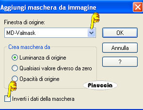 Apri il menu sotto la finestra di origine e seleziona la maschera MD-Valmsk.jpg, inverti maschera non selezionato.
