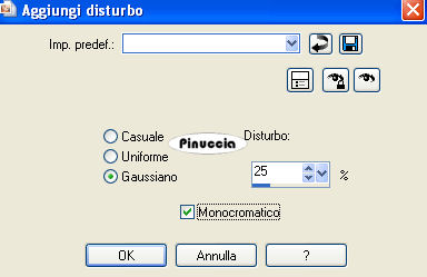 Regola>Aggiungi/rimuovi disturbo/aggiungi disturbo, con i settaggi precedenti.