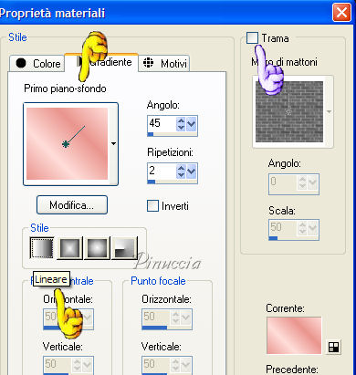 Con questi colori crea un gradiente primopiano/sfondo, lineare, con questi settaggi.