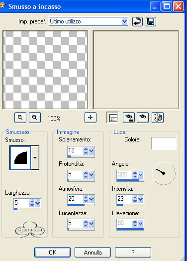 Effetti>Effetti 3d>Smusso a incasso, colore bianco.