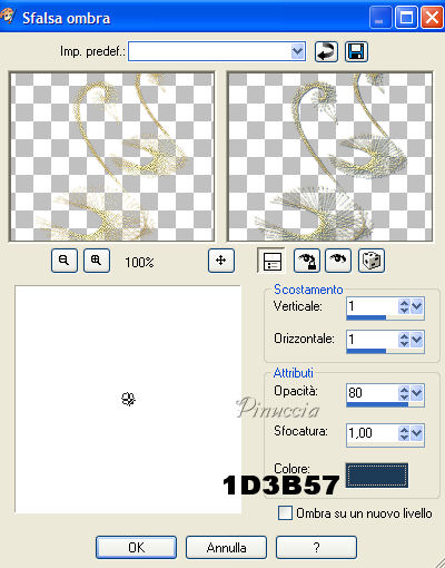 Effetti>Effetti 3D>Sfalsa ombra, con gli stessi settaggi usati in precedenza.