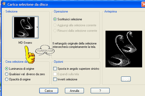 Selezione>Carica/Salva selezione>Carica selezione da disco e cerca la selezione MD-Swans.