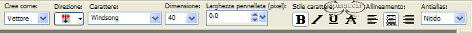 Attiva lo strumento Testo e cerca il font Windsong (contenuto nello zip), con i seguenti settaggi: