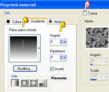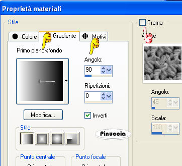 Passa il colore di primo piano a gradiente di primo piano/sfondo, con i seguenti settaggi, trame non selezionato (manina rossa).