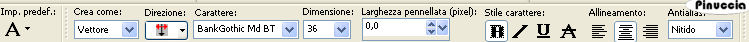Dimensione 36, pennellata 0, B per Bold, antialias selezionato o Nitido.