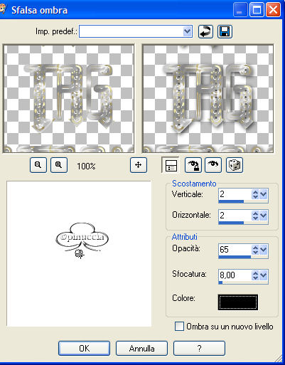 Effetti>Effetti 3D>Sfalsa ombra, colore nero: