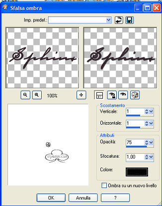 Effetti>Effetti 3D>Sfalsa ombra, con i settaggi precedenti.