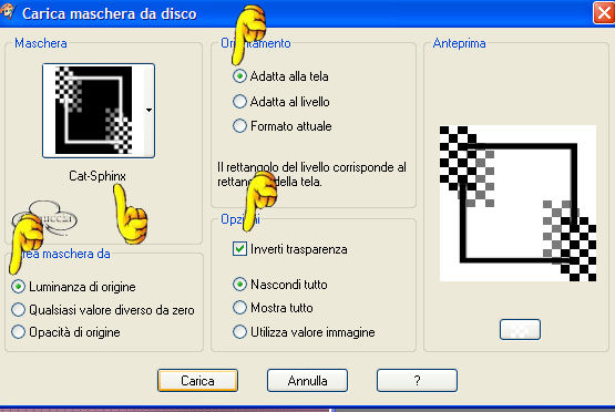 Livelli>Carica/salva maschera da disco. Cerca la maschera Cat-Sphinx e clicca Applica.