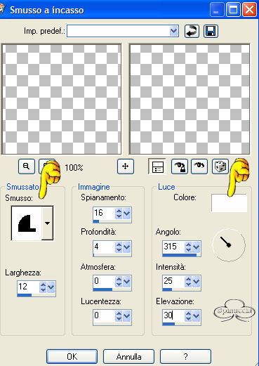 Effetti>Effetti 3D>Smusso a incasso, colore bianco.