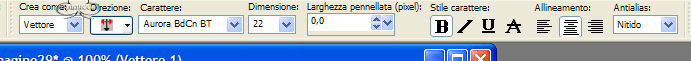 Cerca il font Aurora BdCnBT incluso nello Zip, dimensione 22, larghezza pennellata 0, B per Bold, antialias selezionato.