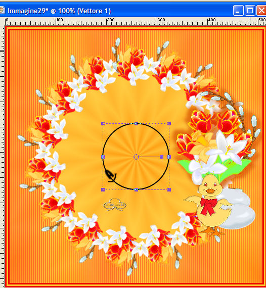Sulla tag clicca al centro del caleidoscopio e disegna un cerchio fino ad arrivare a metà del bordo dei fiori.