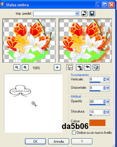 Effetti>Effetti 3D>Sfalsa ombra con questi settaggi:
