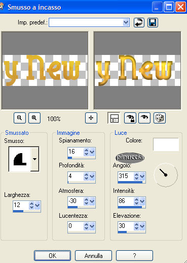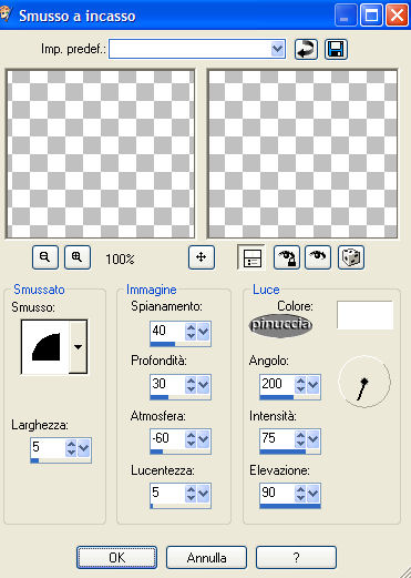Effetti>Effetti 3D>Smusso a incasso, colore bianco (attenzione, settaggi diversi dal precedente).