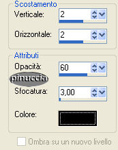 Effetti>Effetti 3D>Sfalsa ombra, con i settaggi precedenti a 2.