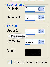 Effetti>effetti 3D>Sfalsa ombra, con i seguenti settaggi, colore nero.