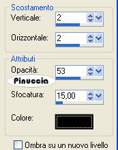 Effetti>Effetti 3D>Sfalsa ombra, con i seguenti settaggi, colore nero.