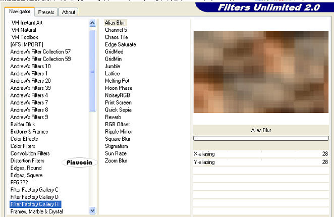 Effetti>Plugins>Filters Unlimited - Factory Gallery H - Alias Blur:
