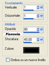 Effetti>Effetti 3D>Sfalsa ombra, con i seguenti settaggi, colore nero.