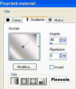 Cambia il settaggio del gradiente selezionando il gradiente Acciaio, con i seguenti settaggi: