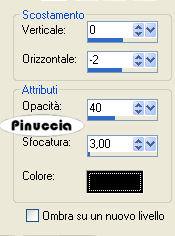 Effetti>Effetti 3D>Sfalsa ombra, con i seguenti settaggi, colore nero.