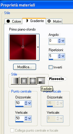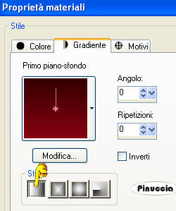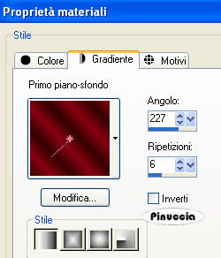 Riporta il colore di primo piano a #870012 e imposta nuovamente il Gradiente con i seguenti settaggi.
