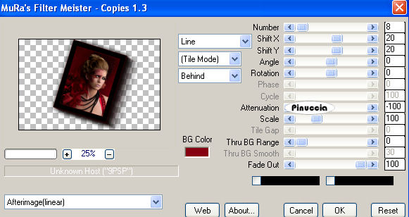 Effetti>Plugins>Mura's Meisters - Copies, con i seguenti settaggi.
