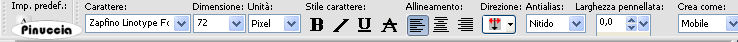 Attiva lo strumento Testo , font Zapfino Linotype, dimensione 72, colore di sfondo #000000