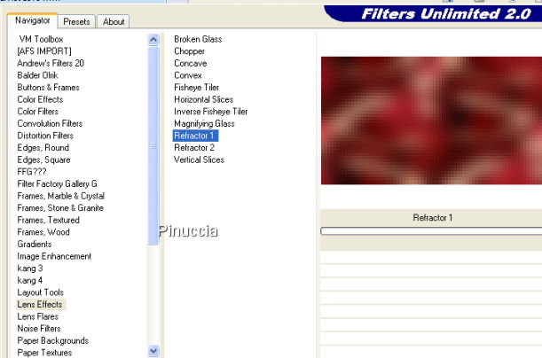 Effetti>Plugins>IC.NET Software>Filters Unlimited 2.0 - Lens Effects, Refractor 1:
