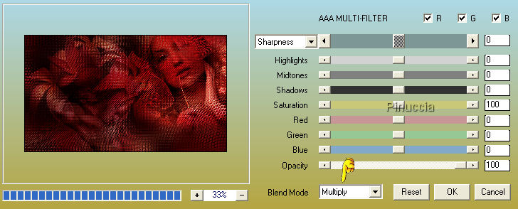 Effetti>Plugins>AAA Multi-Filters>AAA Multi-Filter, seleziona Multiply, con i settaggi standard.