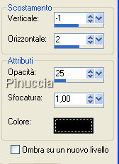 Effetti>Effetti 3D>Sfalsa ombra, con i seguenti settaggi, colore nero.