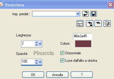Effetti>Effetti di trama>Veneziana, con i seguenti settaggi: