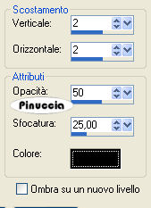 Effetti>Effetti 3D>Sfalsa ombra, con i seguenti settaggi, colore nero.