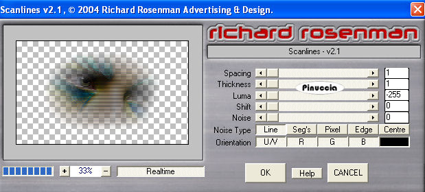 Effetti>Plugins>Richard Rosenman - Scanlines, con i settaggi precedenti.