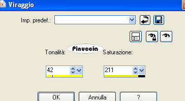 Regola>Tonalità e saturazione>Viraggio, con i settaggi precedenti.
