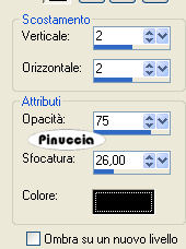 Effetti>Effetti 3D>Sfalsa ombra, con i seguenti settaggi, colore nero.