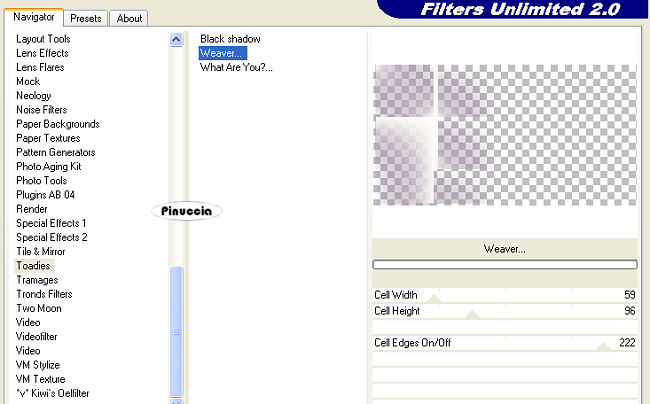 Effetti>Plugins>Filters Unlimited 2.0 - Toadies - Weaver:
