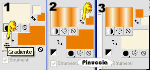 Riporta il colore di primo piano a Gradiente, selezionando il gradiente dal menu della palettina (1),