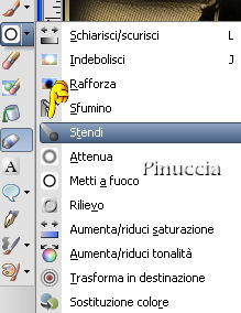 Attiva lo strumento Pennello Stendi con i seguenti settaggi.