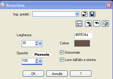 Effetti>Effetti di trama>Veneziana, con il colore #65534a.