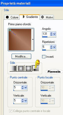 Passa il colore di primo piano a Gradiente di primo piano/sfondo, con i seguenti settaggi: