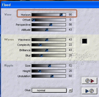 Effetti>Plugins>Flaming Pear - Flood, con gli stessi settaggi, ma cambiando il valore di Horizon con 90.