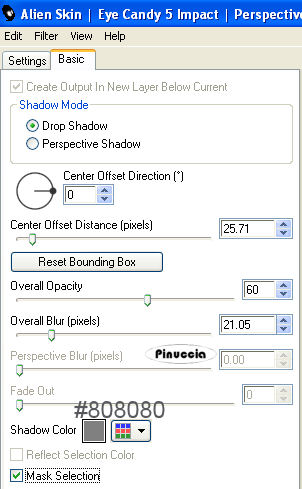 Effetti>Plugins>Alien Skin Eye Candy 5 Impact - Perspective Shadow, con i settaggi precedenti.