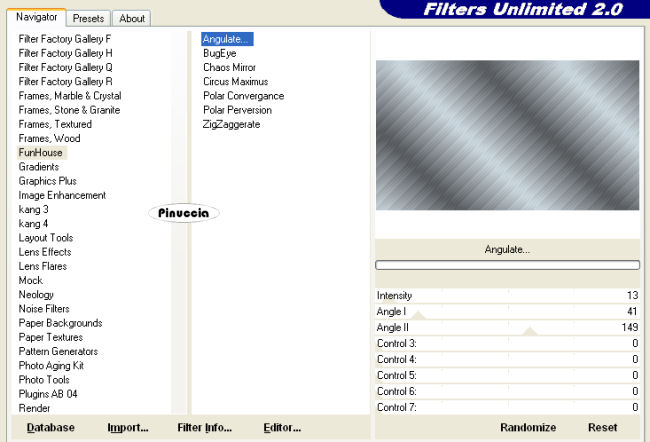 Effetti>Plugins>Filters Unlimited 2.0 - Funhouse - Angulate, con i settaggi standard.