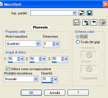 per avere correttamente l'impostazione dei settaggi standard, è sufficiente cliccare sull'icona del cerchietto: