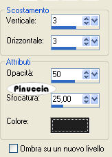 Effetti>Effetti 3D>Sfalsa ombra, con i seguenti settaggi: